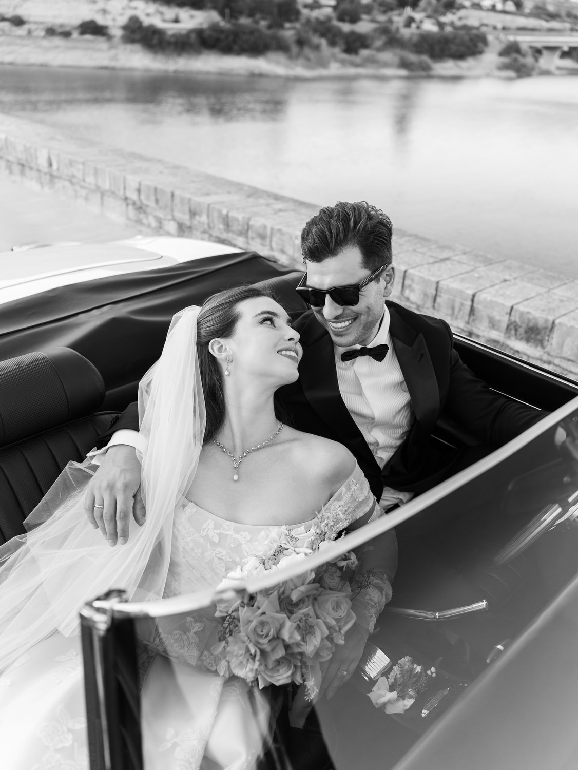 Evenings on Greek islands can get a little breezy. A light, customizable shawl or wrap will keep you cozy without overshadowing your dress. It’s a bridal accessory for a Greek island wedding that’s practical, stylish, and perfect for sunset photos.