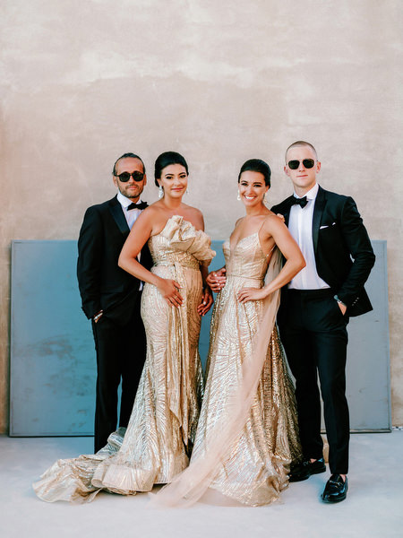 An Arts Factory Santorini wedding supports this level of fashion energy. The venue’s architectural strength allows bold design to stand independently without overwhelming the space.