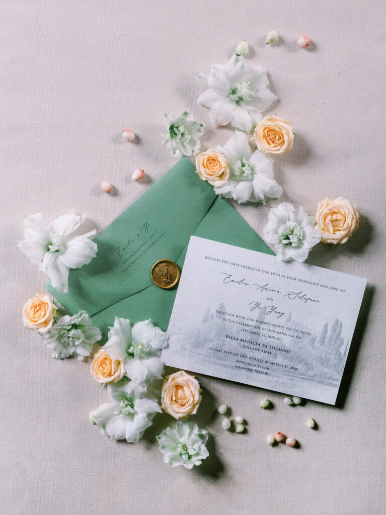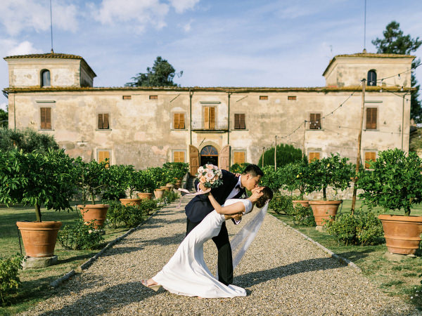 Tuscany is a landscape made for lovers. And not only for those drawn to its literature, poetry, artistic legacy, heavenly wines, and divine cucina. But also for those who fall in love with its breathtaking villas and historic estates. Emilia and Yi’s celebration was the epitome of a luxury Tuscany villa wedding, set among rolling hills and timeless Italian beauty.