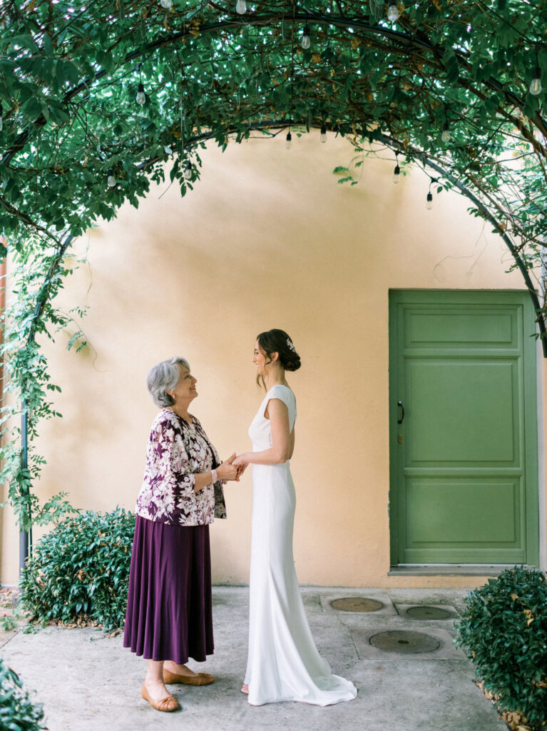 As the rain fell during preparations, the skies cleared just moments before the ceremony began, bathing the gardens in golden Tuscan light. “It’s good luck if it rains on your wedding day,” the bride said — and Tuscany delivered its magic.