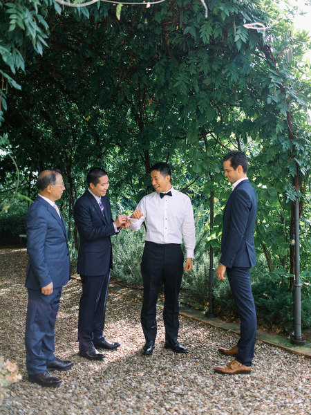 WEDDING PLANNER: The Tuscan Wedding | WEDDING VENUE: Villa Medicea Di Lilliano | FLORIST: Flowers Living |. VIDEOGRAPHY: Aberrazioni Cromatiche | MUA: Cherie Spisso | LIGHTS DESIGNER: Almaproject | CATERING: Galateo. Ricevimenti | CELEBRANT: Blessing From Italy | MUSIC: Dj Matthew | PHOTO BOOTH: Revolution |. WEDDING DRESS: Bhldn Badgley Mischka Sawyer Gown | BRIDAL SHOES: Badgley Mischka |. JEWELRY EARRINGS & HAIR PIECE: Usa Bride By Dareth Colburn | VEIL: Yuri Chang | GROOM SUIT: Armani Tuxedo Jacket |. GROOM SHOES: Allen Edmonds | WEDDING RINGS & BANDS: Brian Gavin