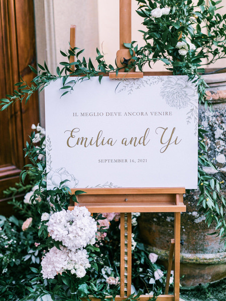Weather forecasts predicted storms on Emilia and Yi’s wedding day, but love — and a little faith — prevailed. With the support of their planner, Daniela from My Tuscan Wedding, every indoor option was carefully prepared. Still, Emilia chose to follow her heart and proceed with an outdoor ceremony.